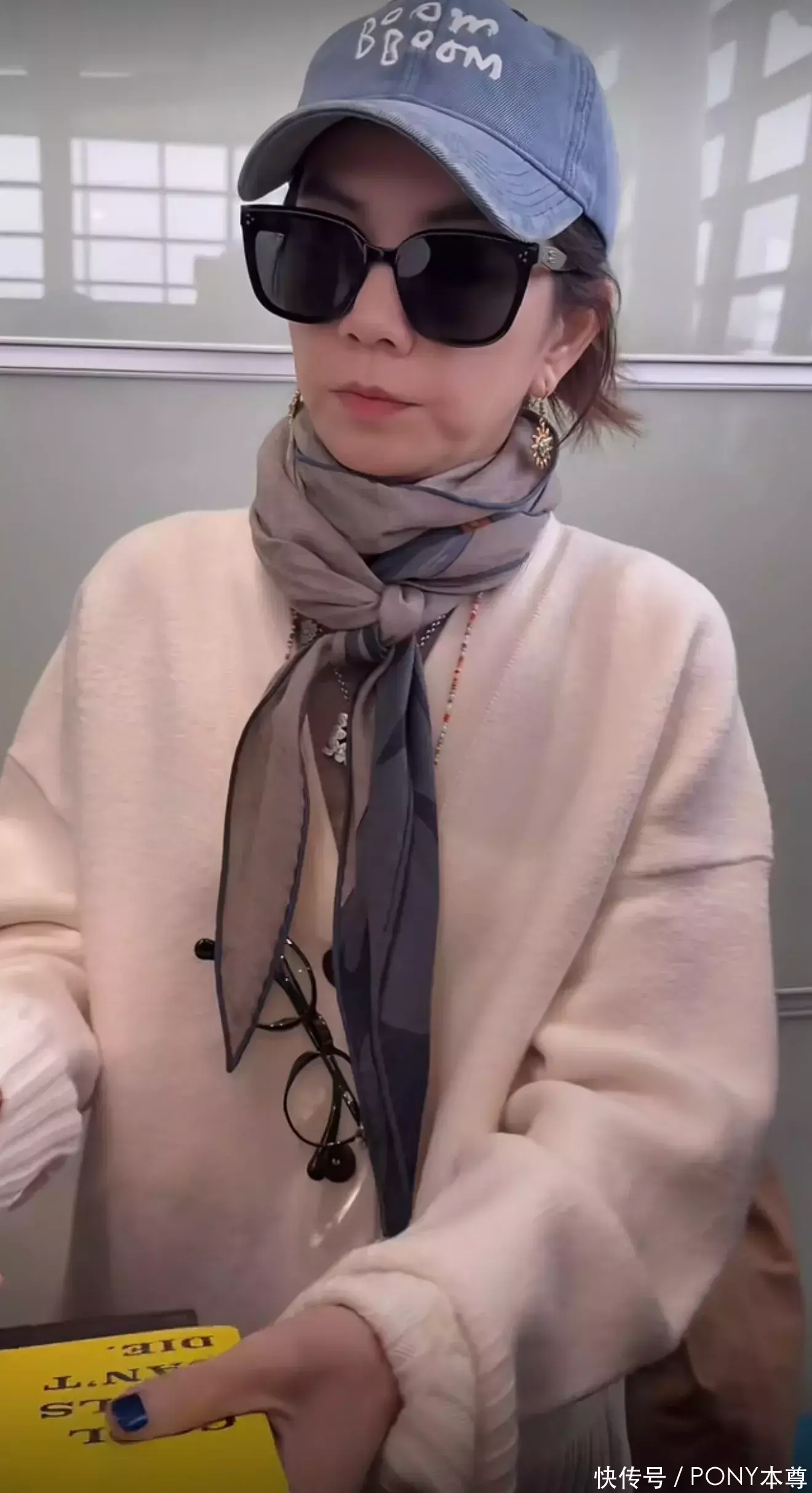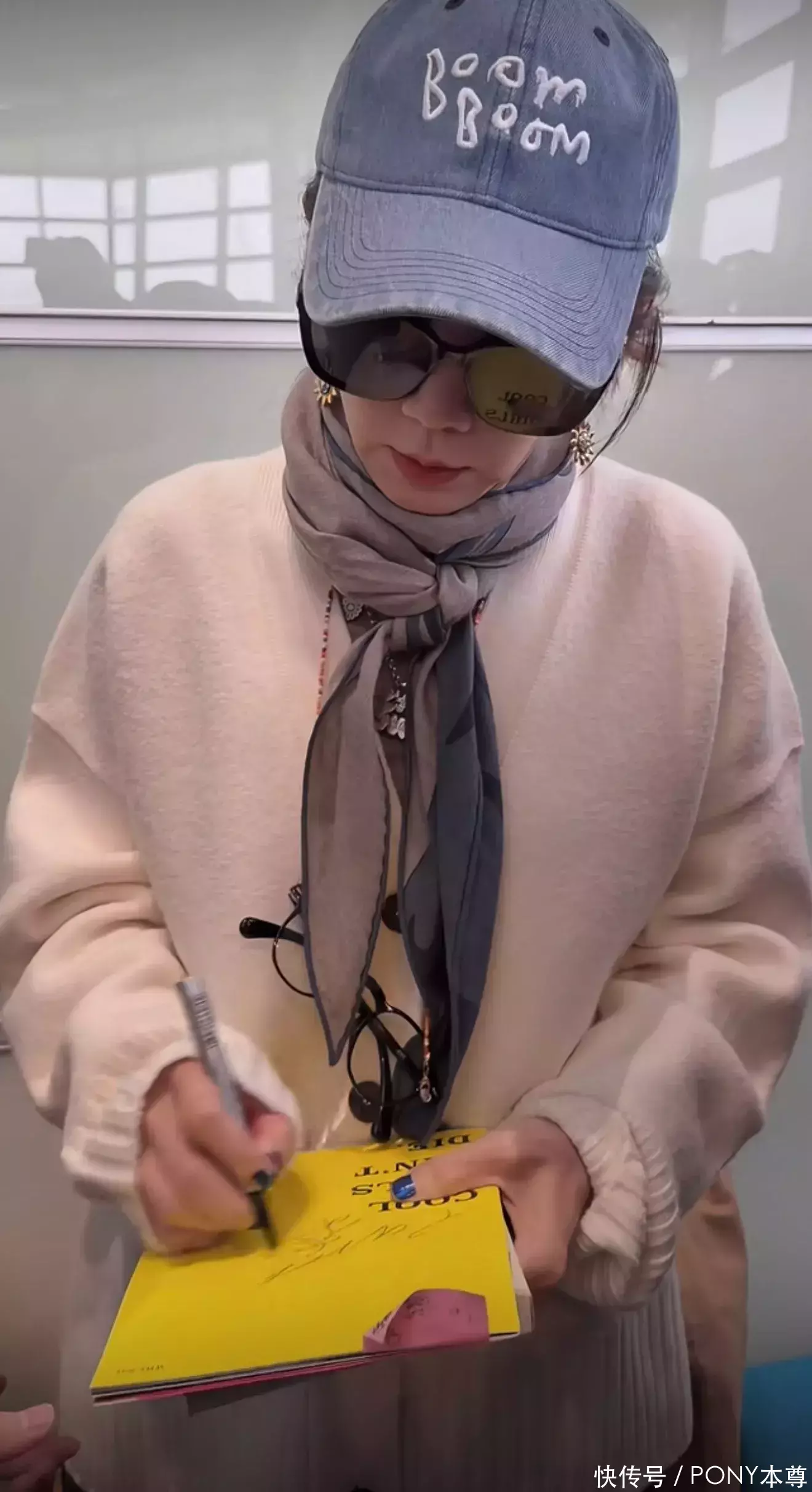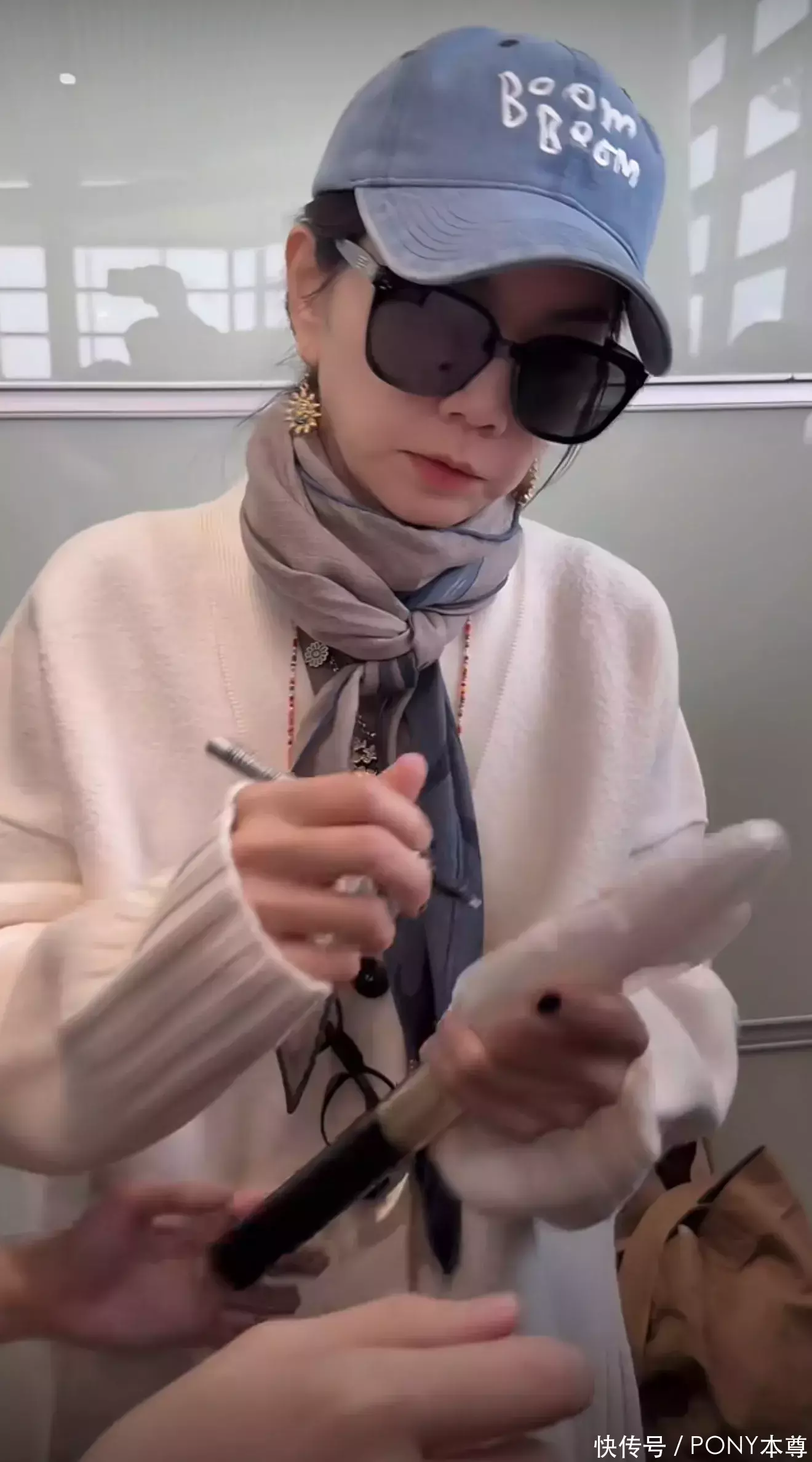 Ella机场为粉丝签名状态好!穿针织开衫搭小围巾,越来越好看了!