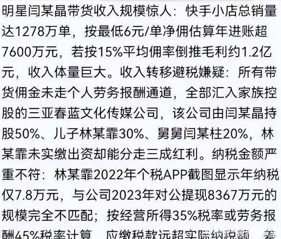 举报材料说,他公司在海南注册享受15%的税收优惠,却在吉林辽源的居民楼里空壳搞异地经营。她的快手小店,卖得特别火,销量超过一千二百万单,年收入毛利达到了1.2亿。